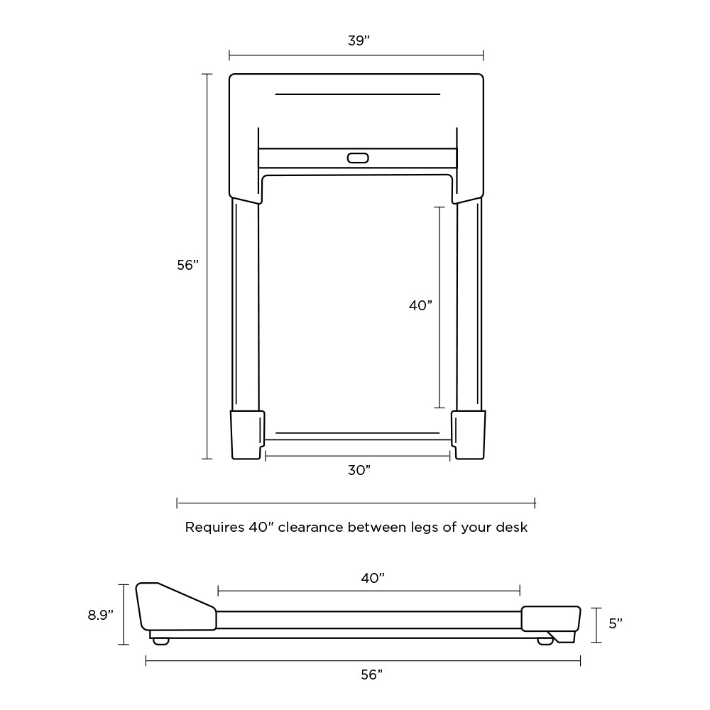 Make sure there's at least 40" of space between the legs of your standing desk. Or you can pair your treadmill with the Unsit™ Standing Desk to ensure a perfect fit.