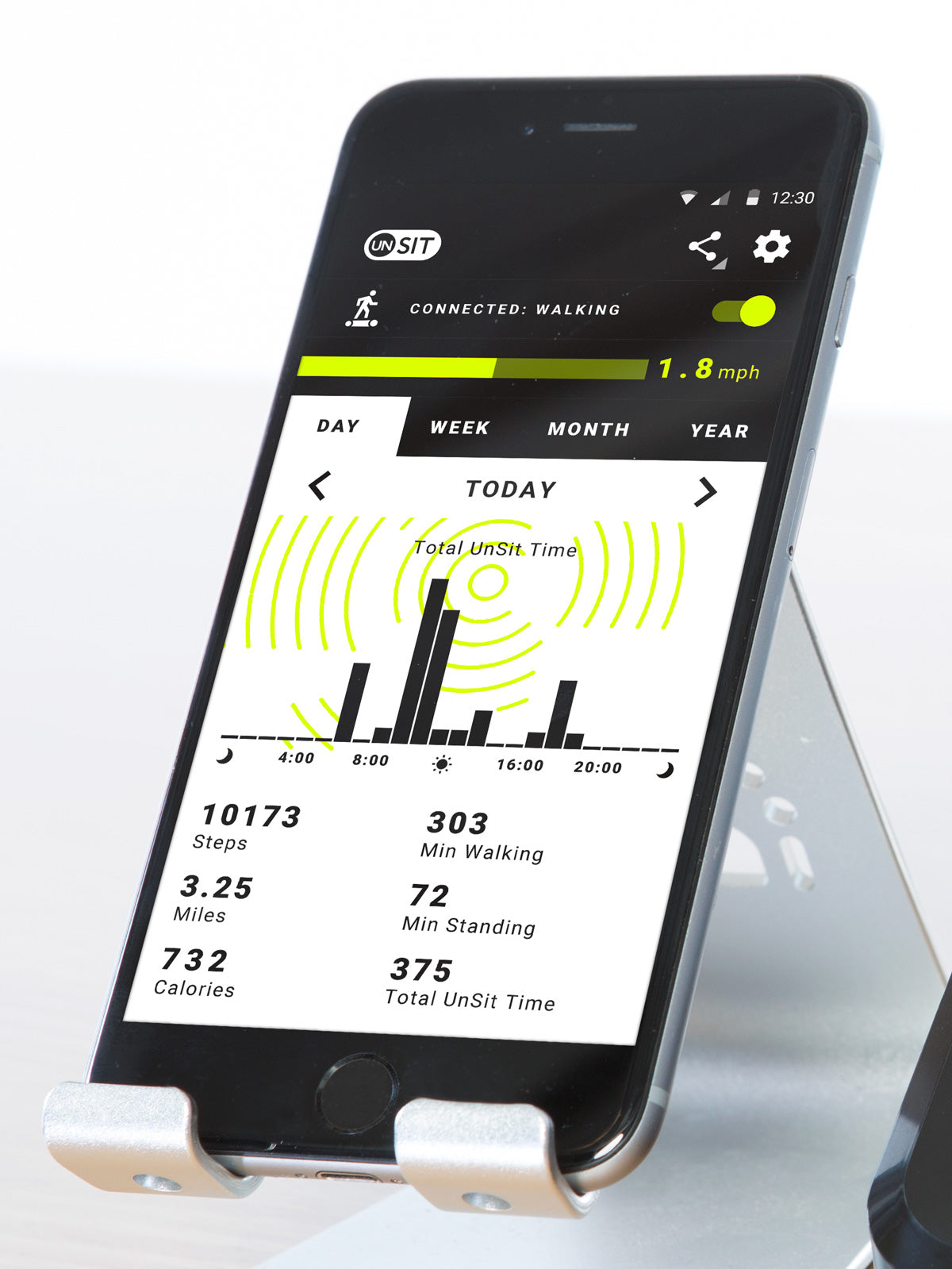 Normal wearable devices can’t track steps if your arms don’t swing. The Unsit™ Mobile App pulls step data directly from your treadmill and syncs with your favorite health tracking apps, like Apple Health, Fitbit and more.